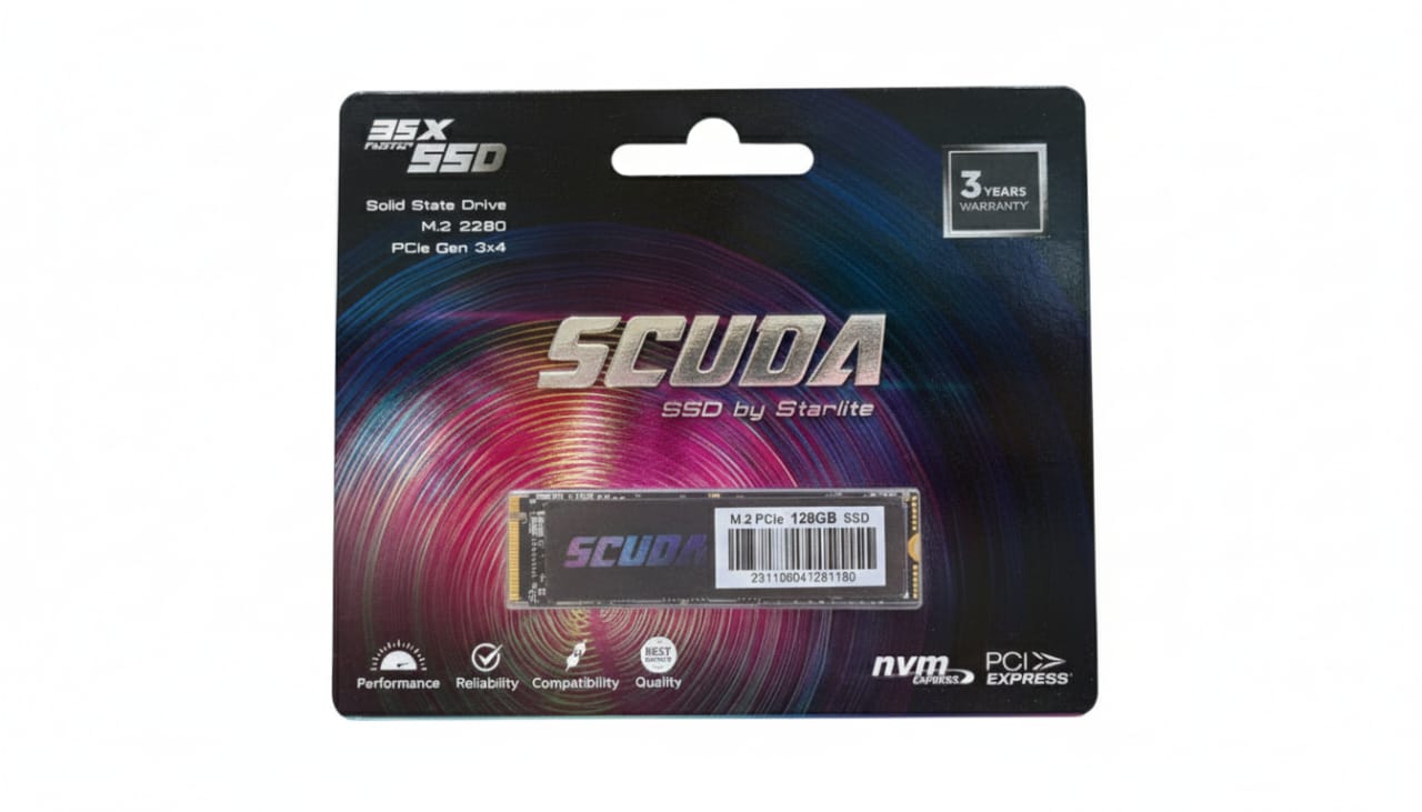 Dramatically improve your system’s speed and responsiveness with the SCUDA 128GB M.2 2280 PCIe Gen 3 x 4 NVMe SSD. Built by Starlite, this SSD offers 35X faster performance compared to traditional hard drives, ensuring quick boot-ups and rapid application loading times. The M.2 2280 form factor makes it ideal for modern laptops and desktop builds. Benefit from the enhanced reliability and compatibility of NVMe technology, giving you a best-quality, high-performance storage solution.